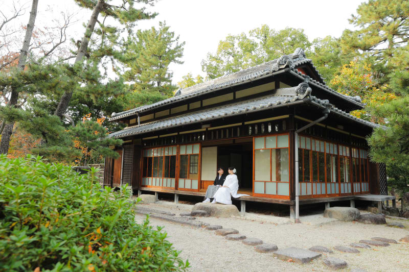 このお茶室は一般的にお茶会などで使われることもありますが、婚礼の撮影でご希望の方にも使っていただくことができます!