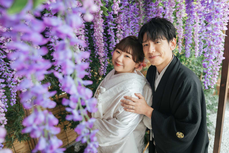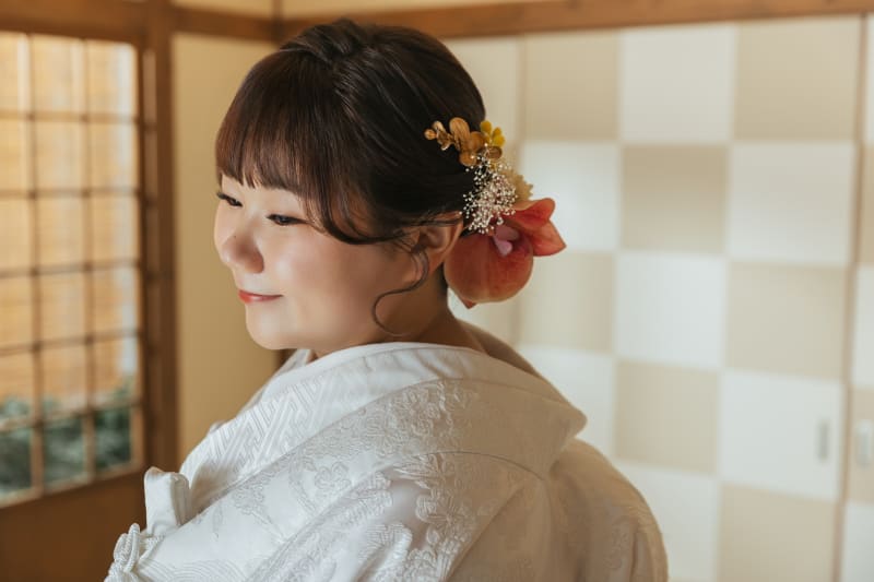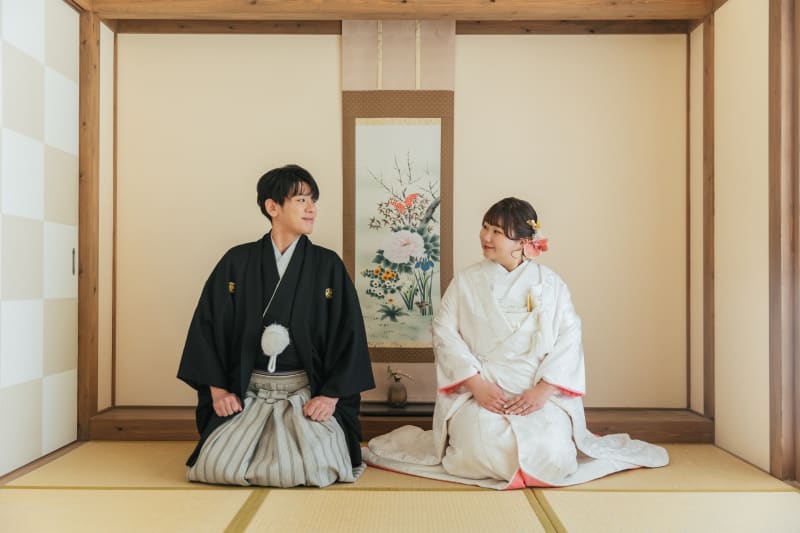 屋内庭園スタジオは、天候や季節に左右されることなく、和の雰囲気をしっかりと感じながら撮影ができるロケーションです。和傘や掛け軸、障子などの和装に合う背景が整っており、白無垢や色打掛、紋付袴の美しさをより引き立ててくれます。室内ならではの安定した光環境により、おふたりの表情や衣装の質感を丁寧に残すことができ、落ち着いた雰囲気の中でリラックスして撮影を進められるのも魅力です。季節の装飾や花の背景を取り入れることで、華やかさのあるカットからしっとりとした和の一枚まで、バリエーション豊かな写真を残すことができます。移動の負担が少なく、快適な環境で撮影したい方にも魅力的なスタジオです!