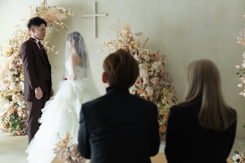 続いては、ご両親に見守られながらの挙式シーン撮影。
