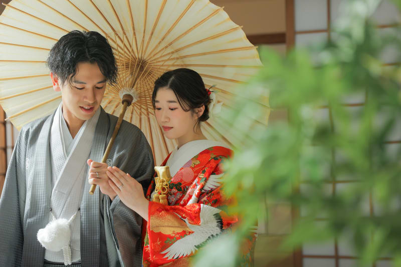 番傘を使ったショットや、おふたりの自然な笑顔、ふとした仕草までしっかり残せるのも魅力。