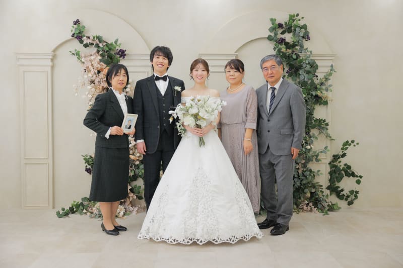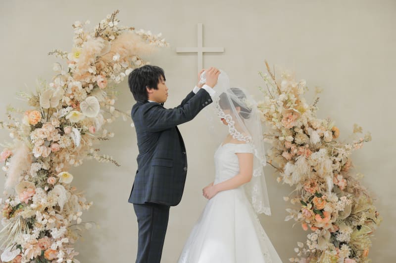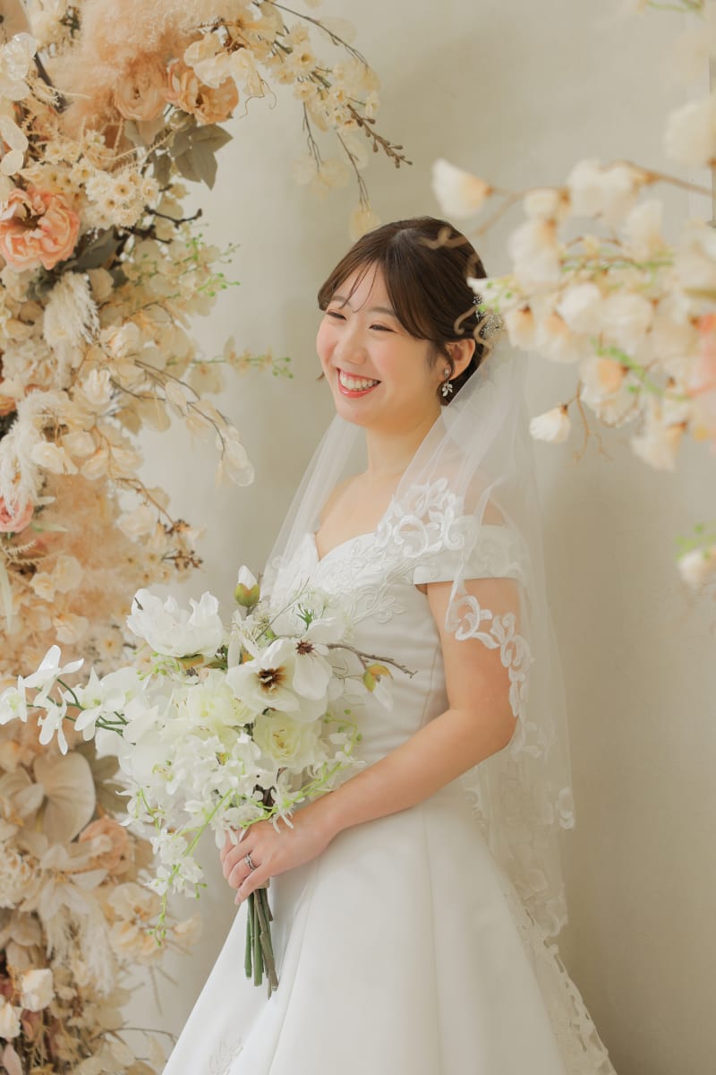 お花がたっぷり飾られた「チャペルスタジオ」で撮影されたお嫁様です。