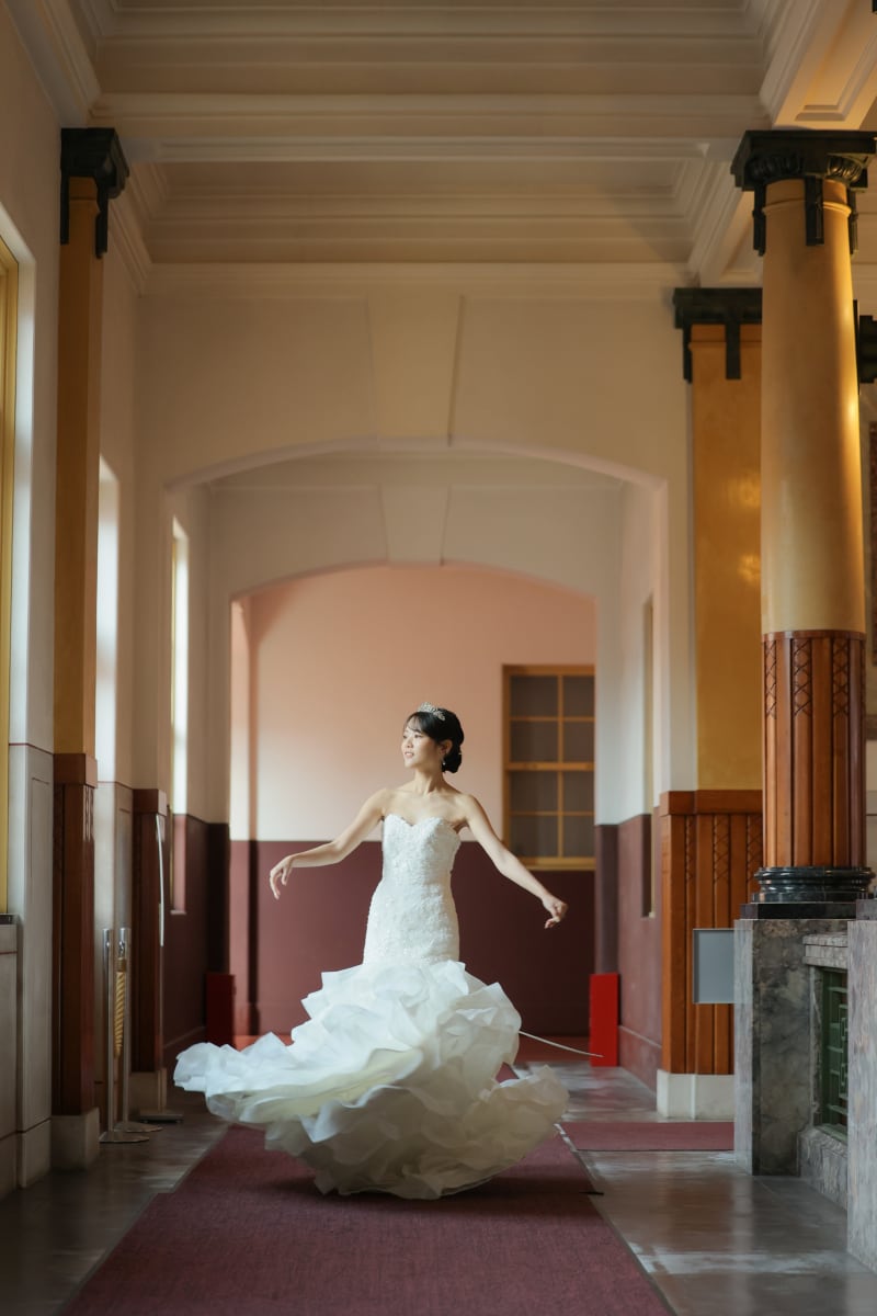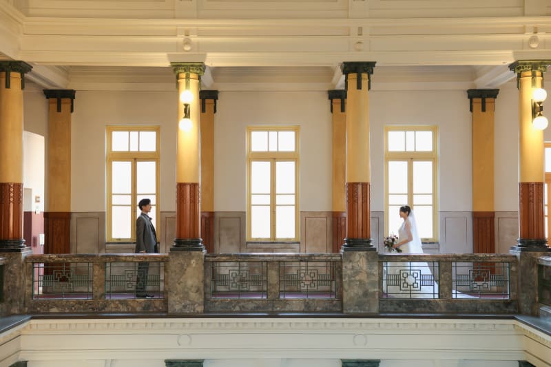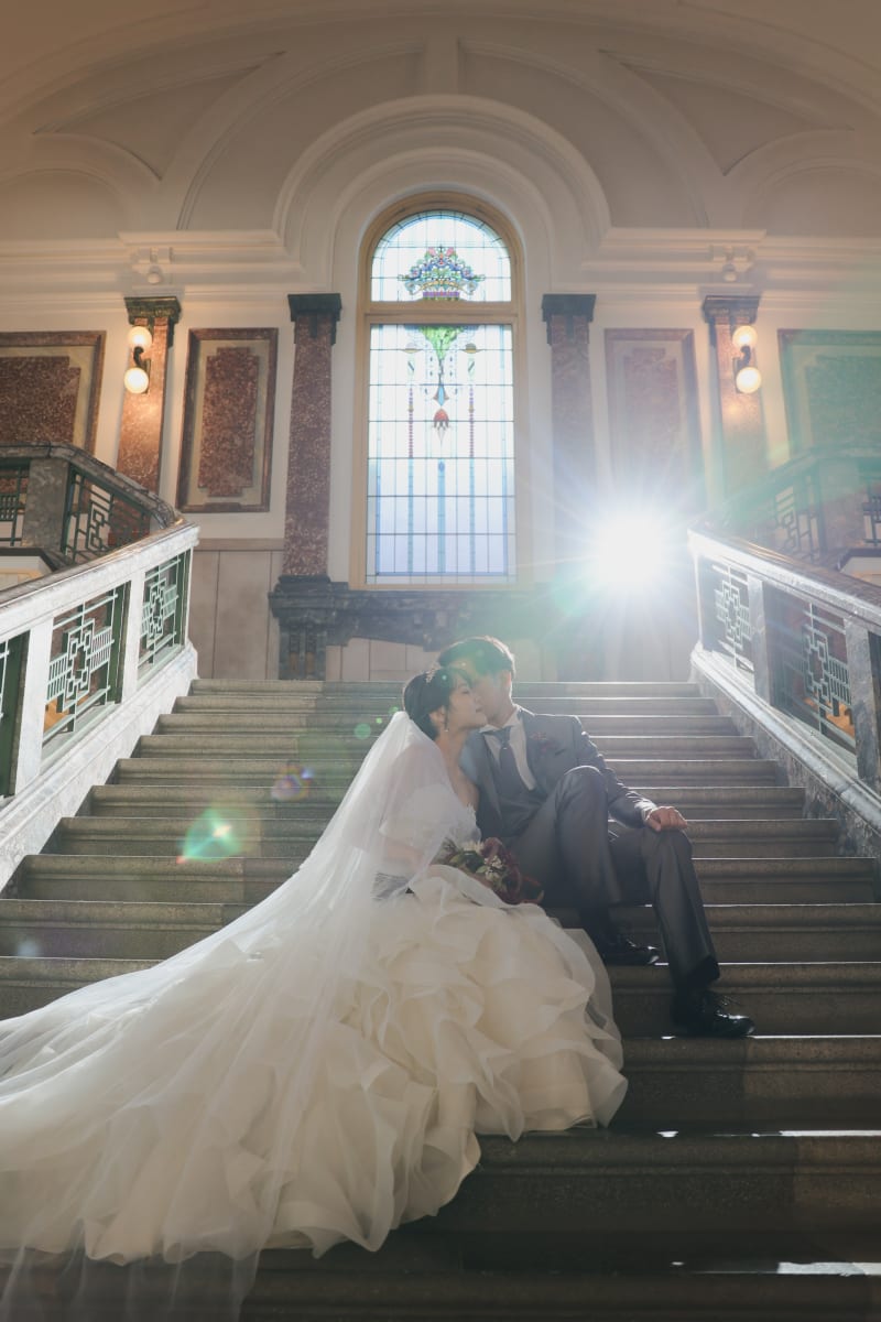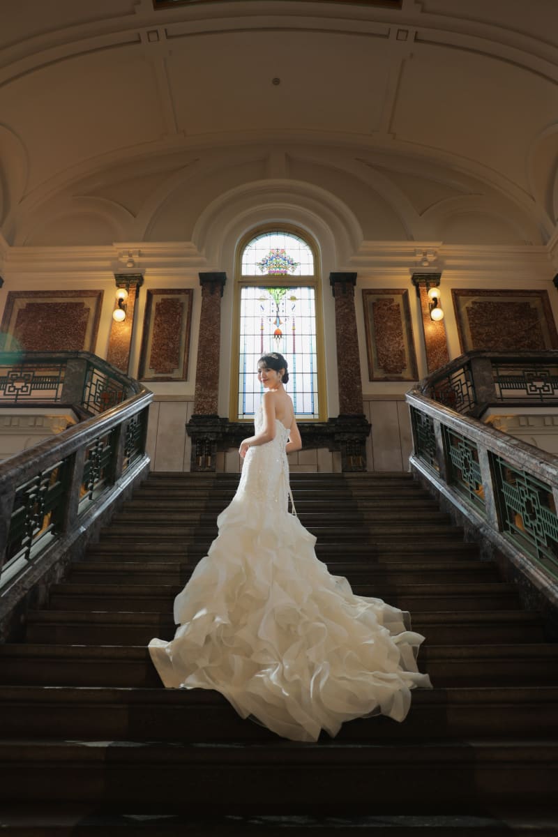 大階段を上がった先のフロアでは、晴れた日はたっぷり自然光が射し込んで、その光を利用してとってもキレイな写真をお撮りできます✨