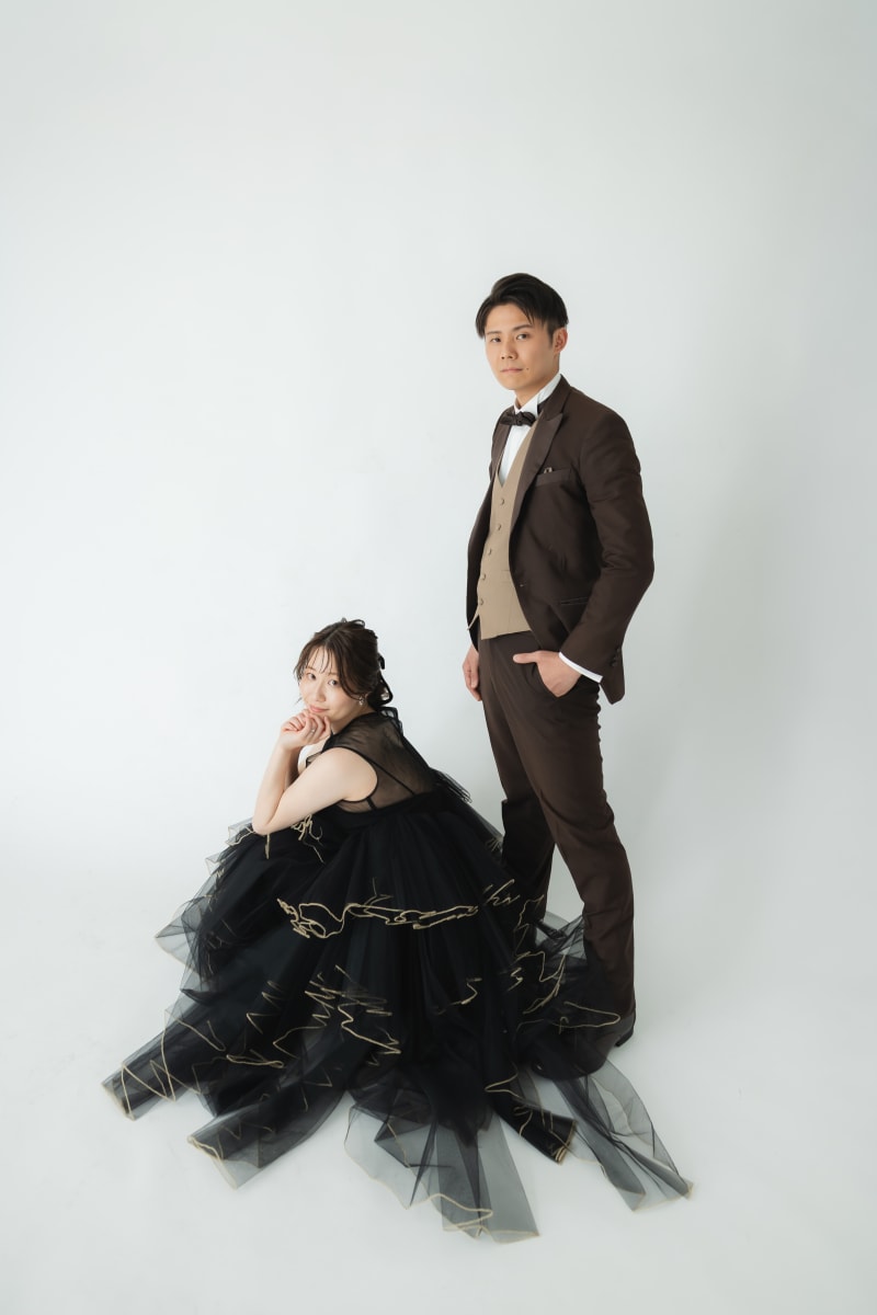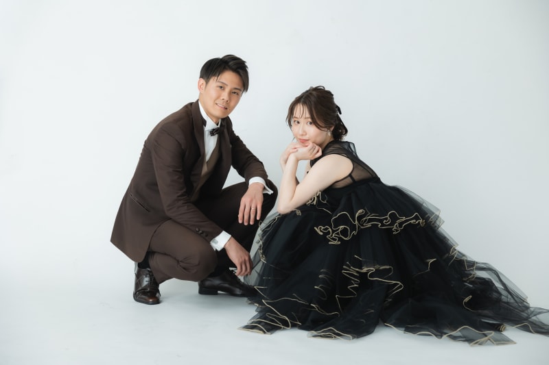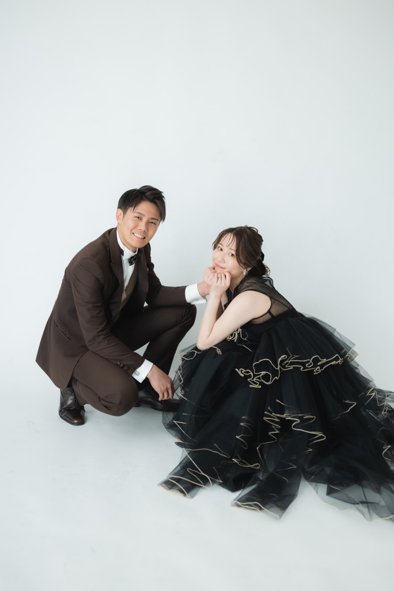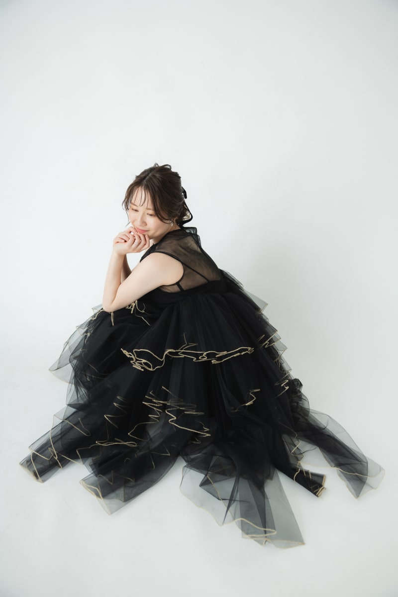 ご新婦様は黒にゴールドのフリンジが可愛いカラードレスと