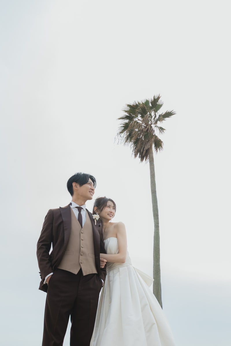 ヤシの木をバックに、ちょっとキメた感じのポージングも提案してみました。