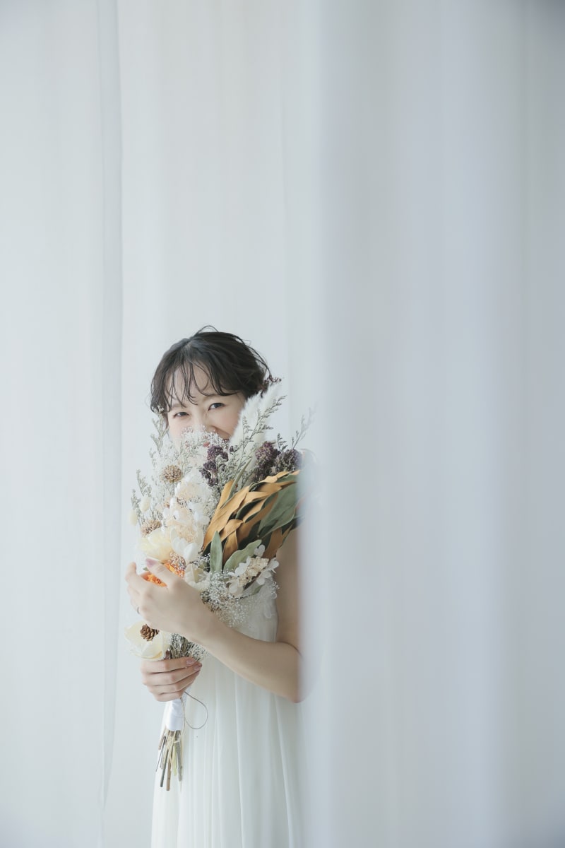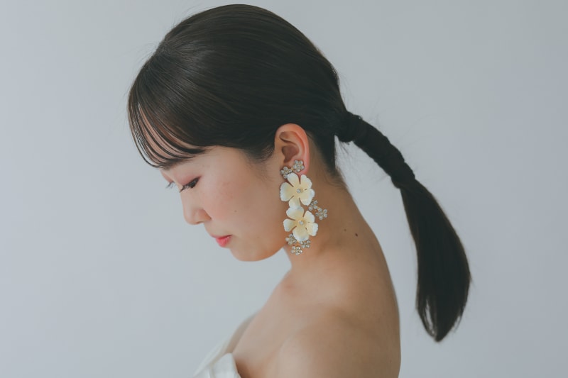 髪の艶感、ウェット感、エアリー感を美しく表現してくれます。 髪飾りも大人っぽさとご新婦様の好みに合わせて組み合わせてくれます!