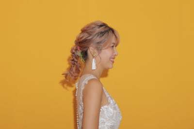 ハイトーンの髪色にグリーンのドライフラワーが人と被らない感じでとっても可愛かったです^^