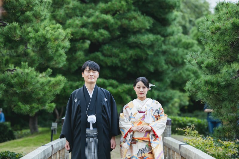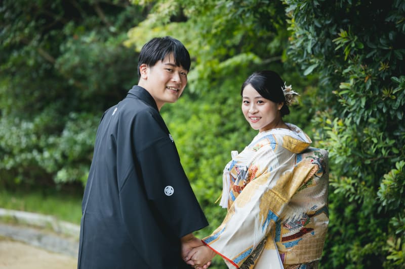 ご新郎様は黒の紋付で、メリハリのあるコーディネートに!