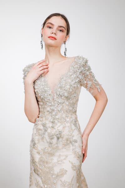 『Aurum』のドレスの特徴は、なんといってもこの衣装全体に施されている繊細なビーディングです。