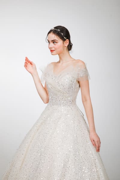 一針一針丁寧に手作業で施されているものだからこその輝きがとても魅力的な衣装です。