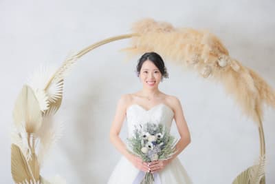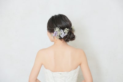 和装ではタイトな面スタイルで仕上げさせて頂き、お持ち込みいただいたドライフラワーをつけさせていただきました。