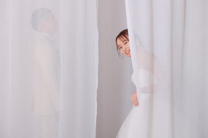 お二人の撮影を上品に彩るハウススタジオでは、カメラマンがおふたりのイメージに合わせてさまざまな背景を使って表現してくれます。
