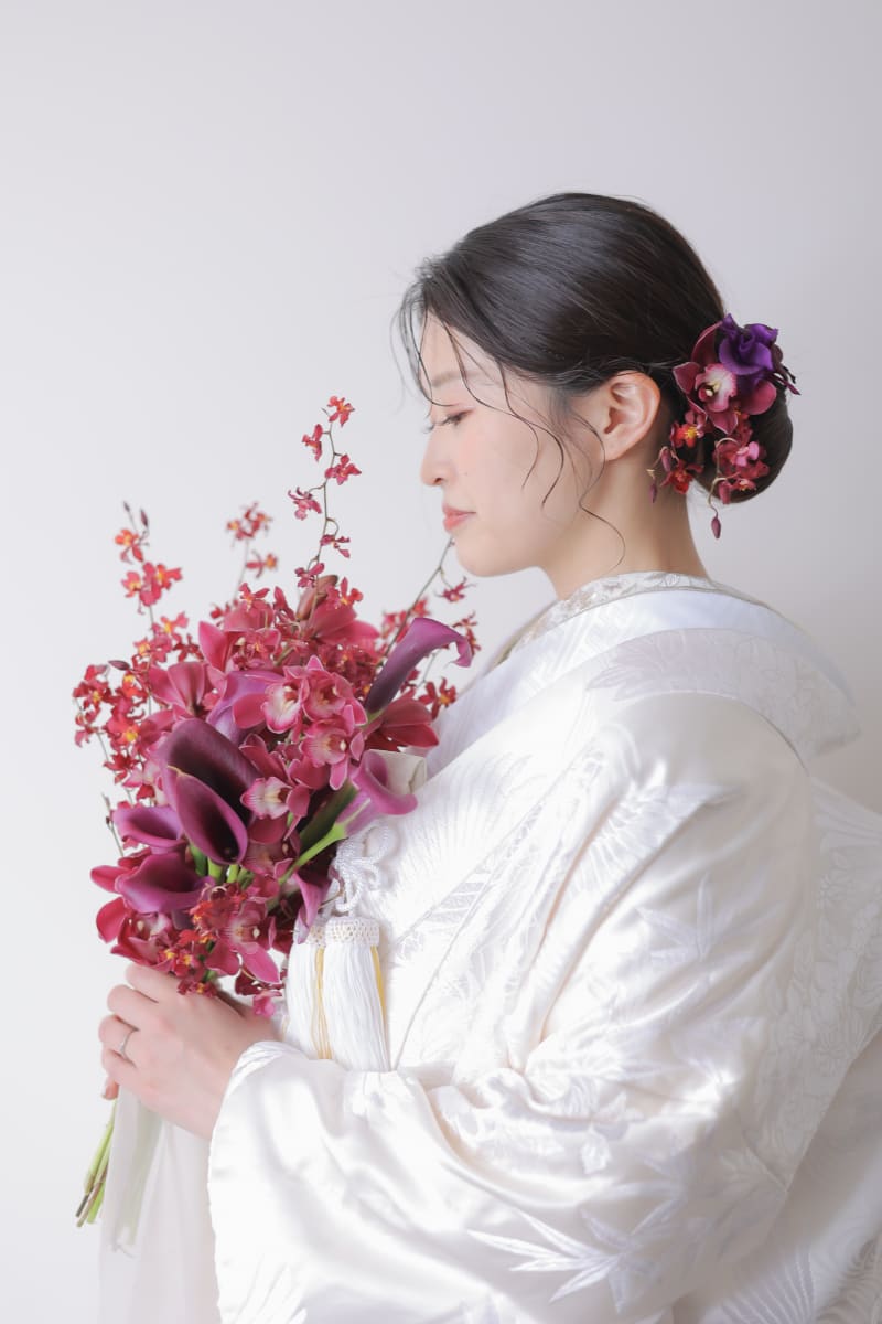 和装のお衣装合わせではブーケとのバランスと新婦様の好みをお伺いしながらご提案させていただきました!