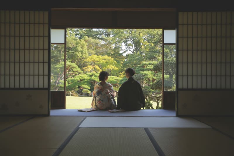 どこで撮っても絵になるお茶室ですが、当店のカメラマンがおふたりにぴったりのシチュエーションを提案してさらにドラマや映画のワンシーンのようなお写真を残していきます♪