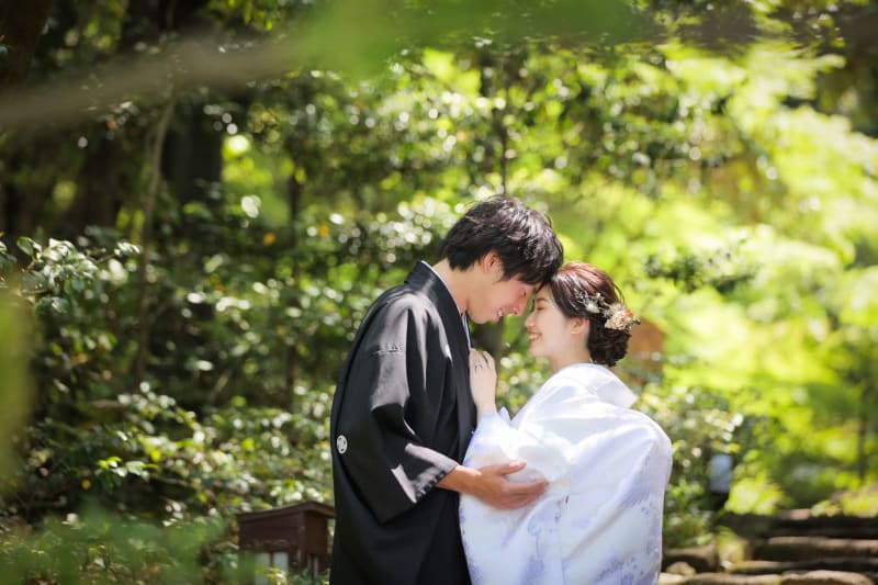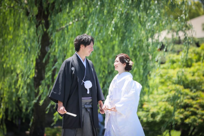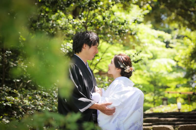 本日はグリーンたくさんの中で撮影をされたお二人のお写真をご紹介いたします^^
