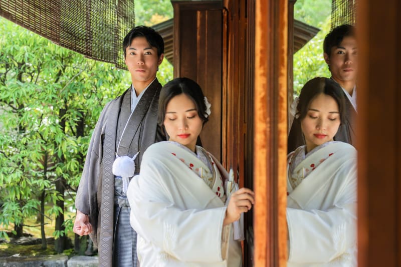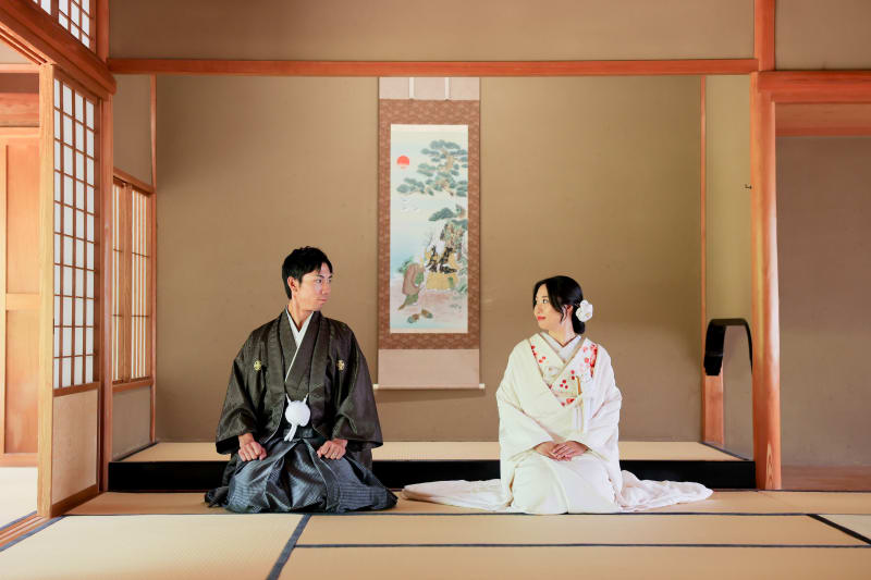 正座のスタイルはお二人からのご要望も多く、掛け軸の前で撮りたい!とイメージされている方も多いのではないでしょうか?