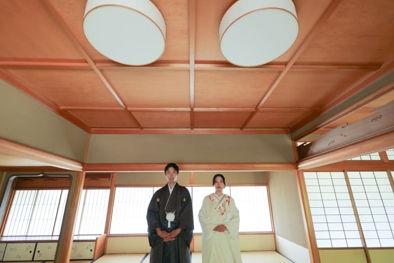 今回のお二人は、そのお茶室を気に入られてこちらでのロケーション撮影に決められました。なので、お茶室をメインに撮影をしました。