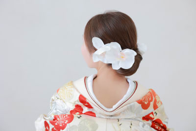 〈 和装 〉ご来店回数 2 回(オンライン相談会の場合は1回) 撮影相談会 → 撮影当日 (衣装選びは撮影当日に行います) → 商品の発送