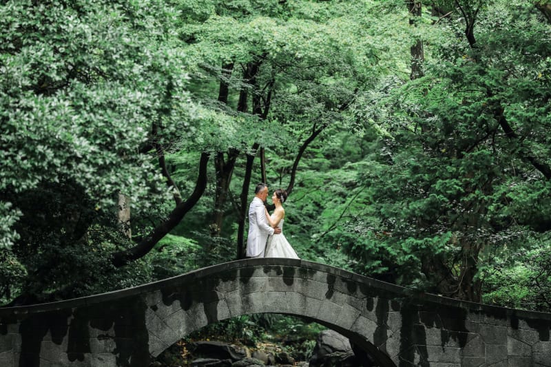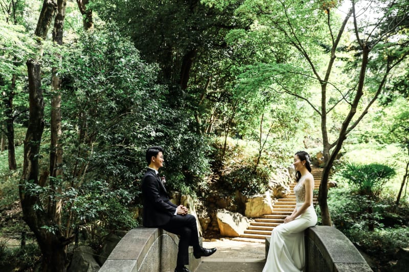 丘や渓谷や池があり自然と文化を大切にした歴史ある公園で、洋装を着て結婚写真を残せるプランです。一年を通して、その季節を象徴する花や木を楽しむことができるスポットです。