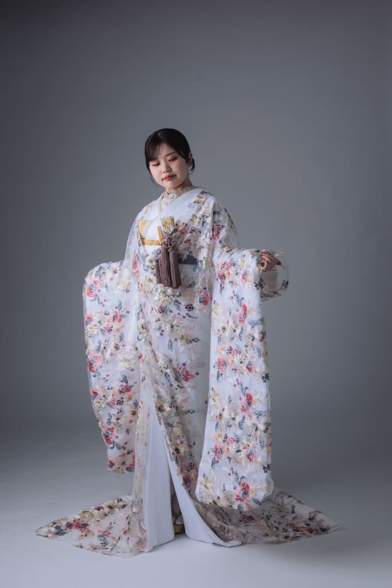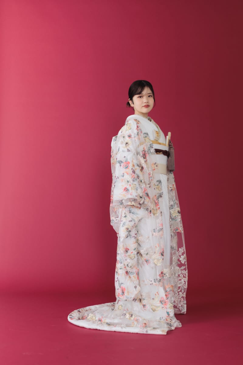 オーガンジーの着物でふんわり可愛い印象を与えます!