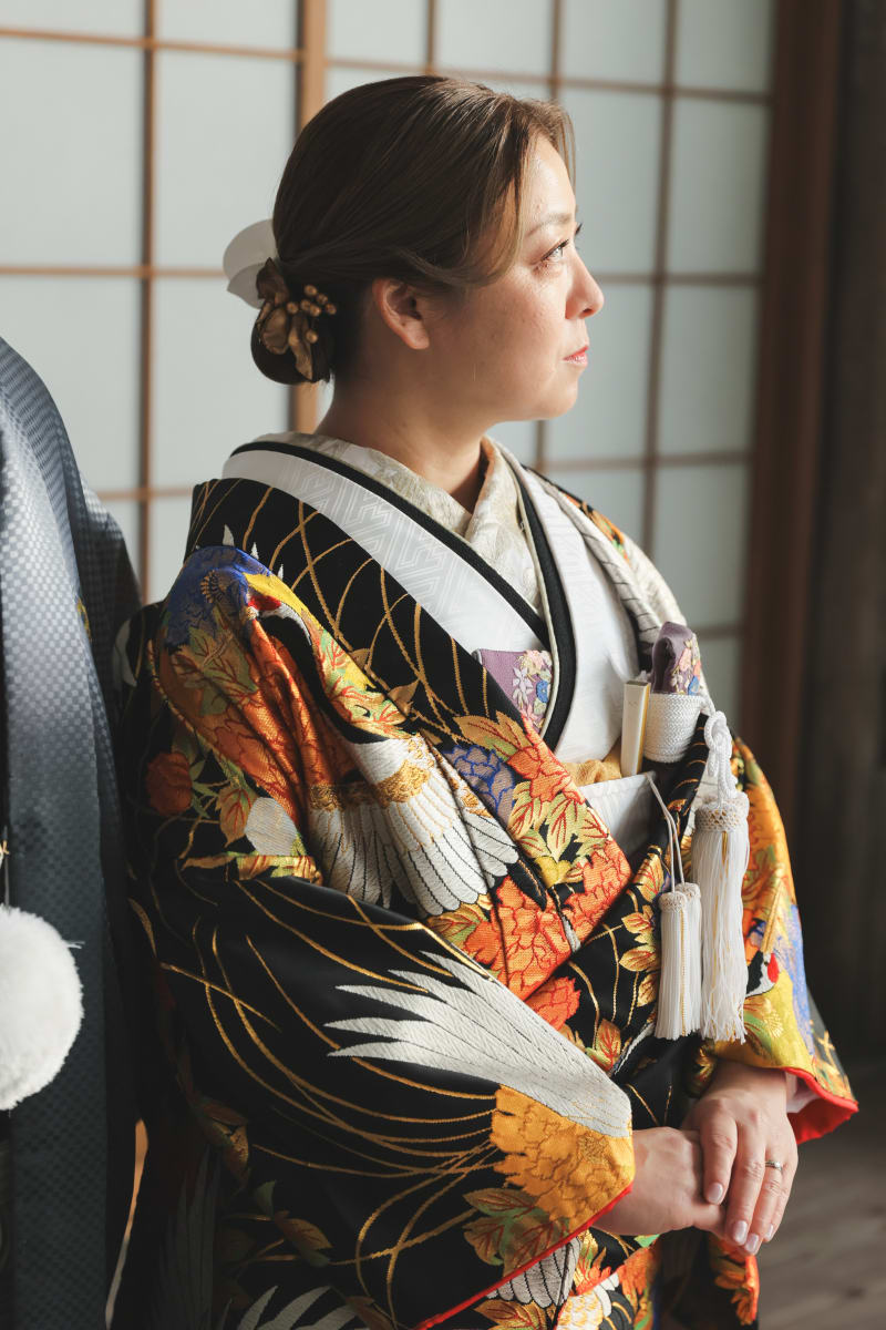 次に和装に人気なのは着物に入ってる色味で合わせたゴールドの木の実や葉っぱです。
