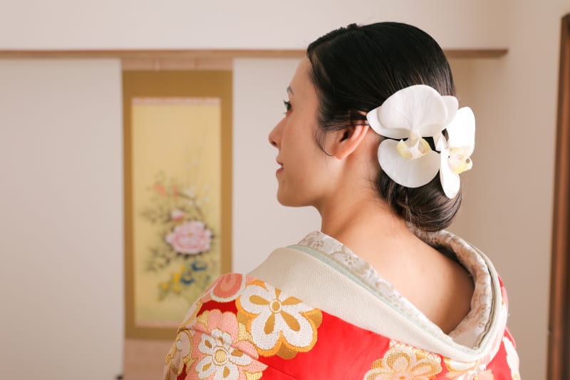 大きめの胡蝶蘭がシニヨンにピッタリ合います!