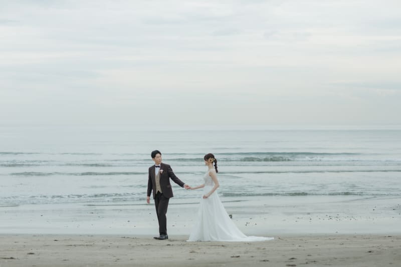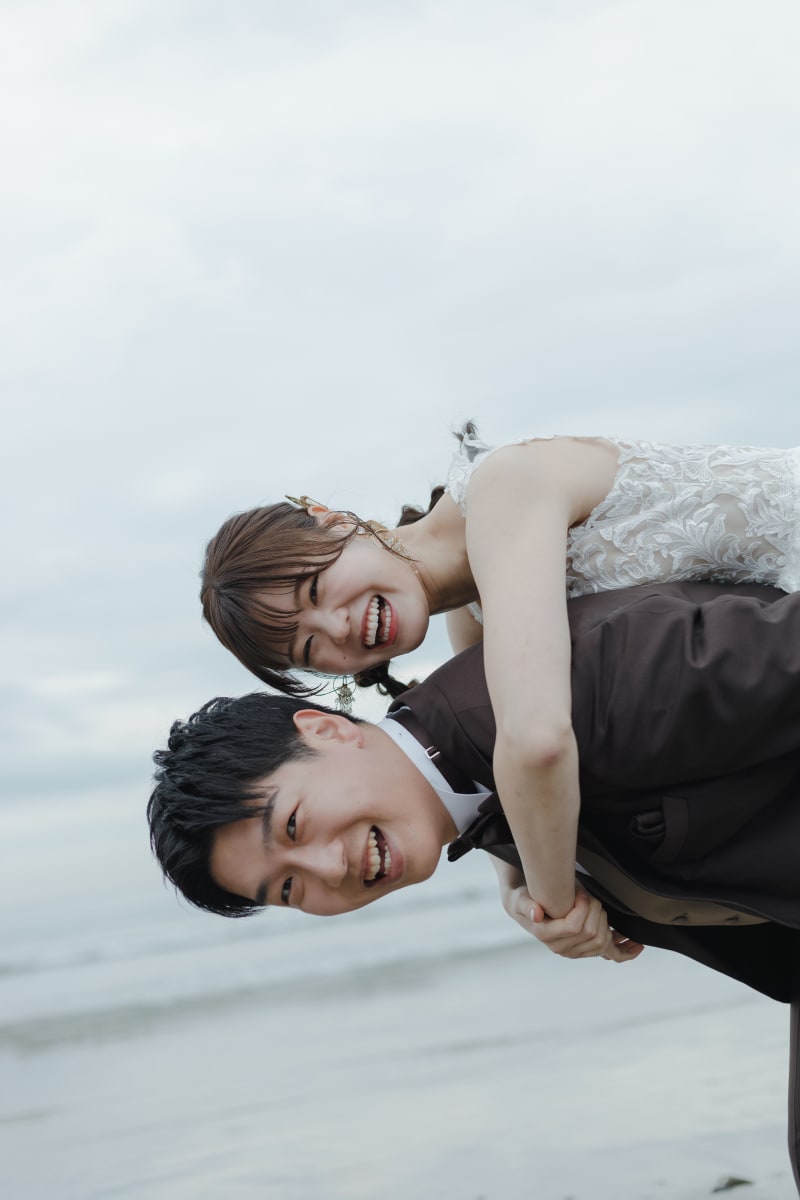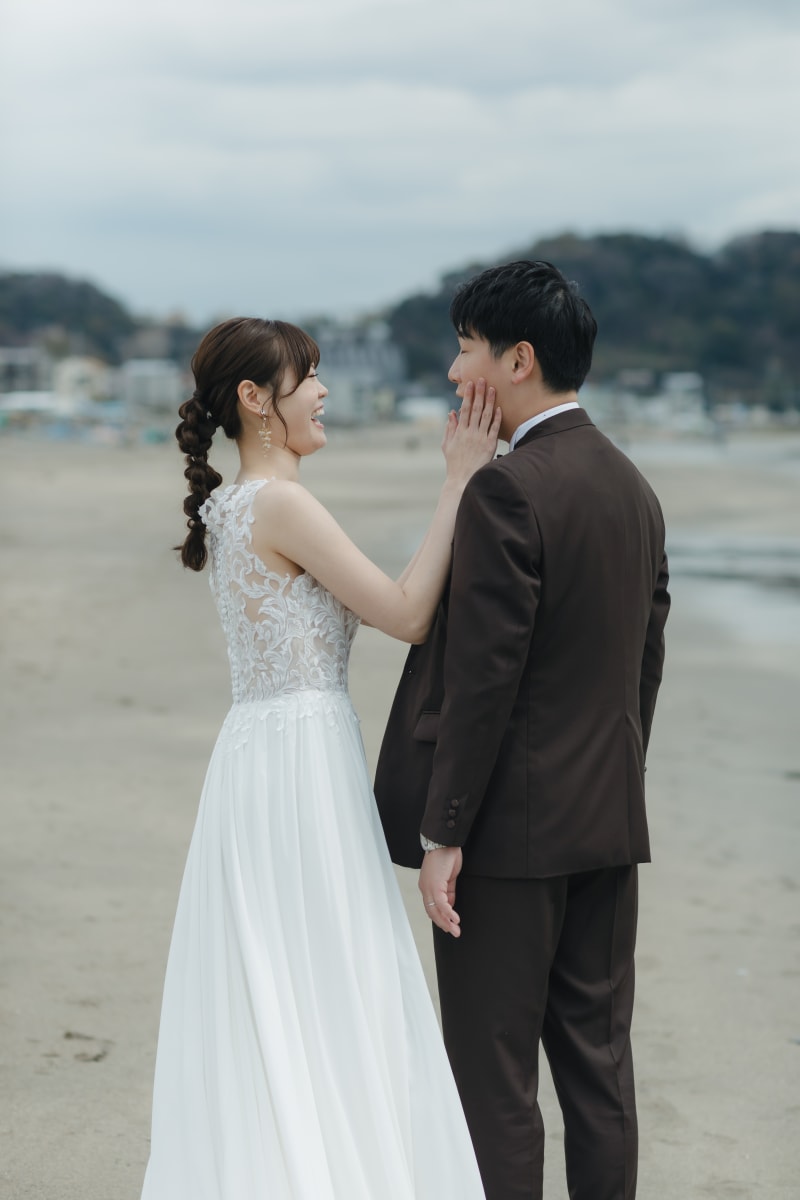 海のロケーションは風が強いのでアップスタイルがおすすめです。