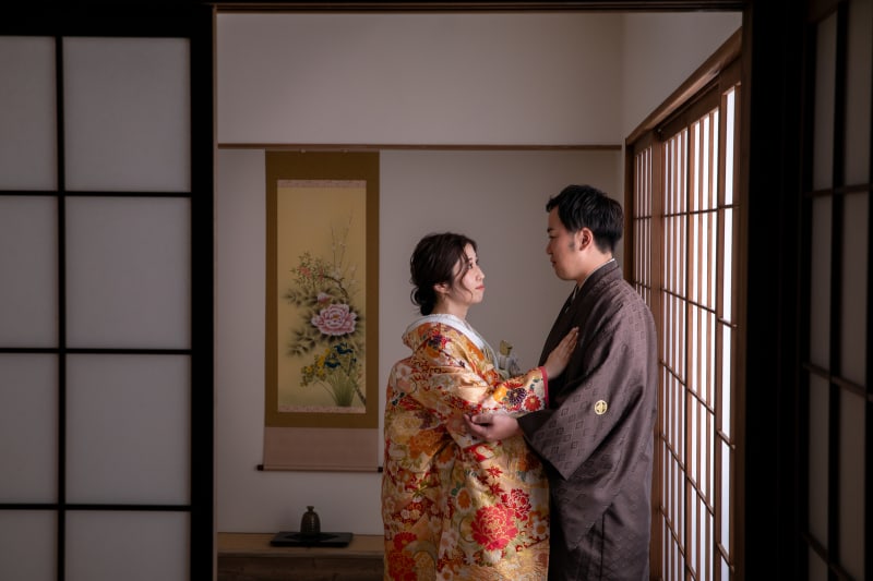 和傘のお貸し出しもありますので、室内でも和装をしっかりお楽しみいただけますよ!