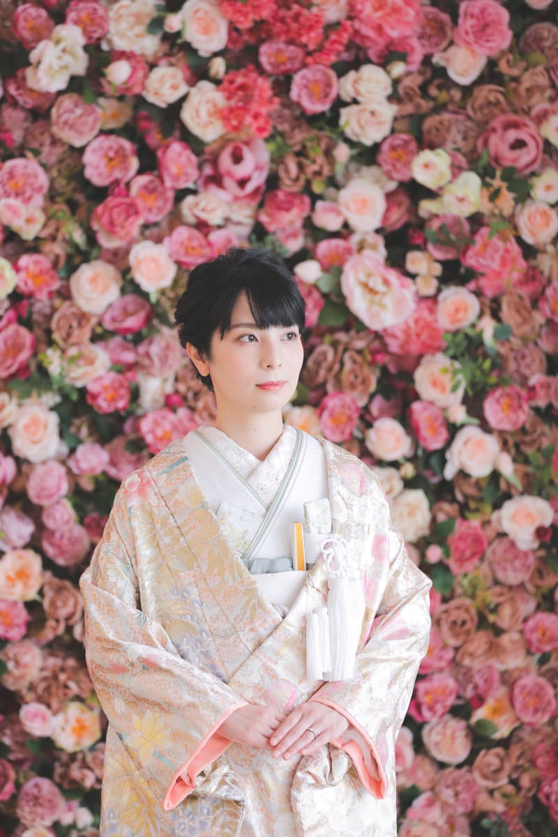 色打掛を着用する際の基本的な小物の色は金色で統一されています。