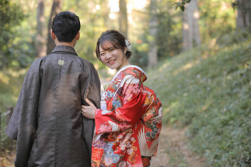 現代では、挙式を白無垢で行い、披露宴は色打掛にお色直しする花嫁が多いようです。