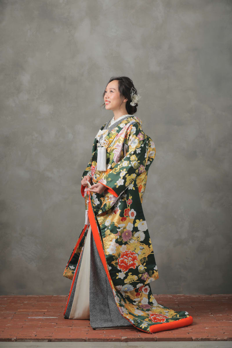 昔は白無垢より格下とされていたようですが、今は同格の衣装として挙式で着ることも可能です。