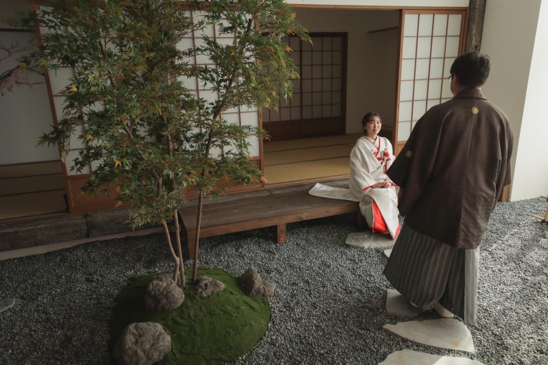 畳のお茶室があり、フォーマルな立ち姿や正座の写真が撮れます。