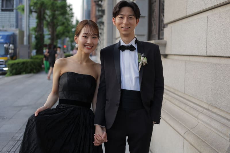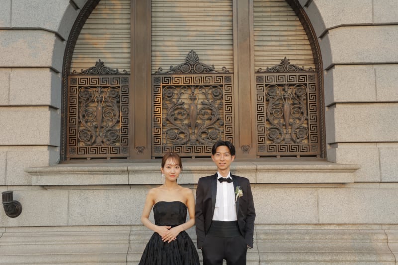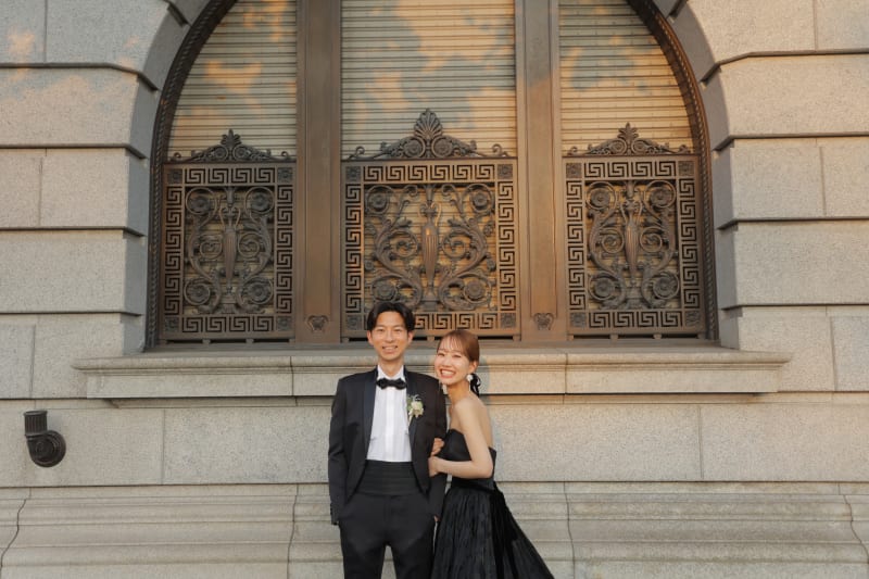 ご新婦様のベロアリボンを取り入れたブラックドレスと