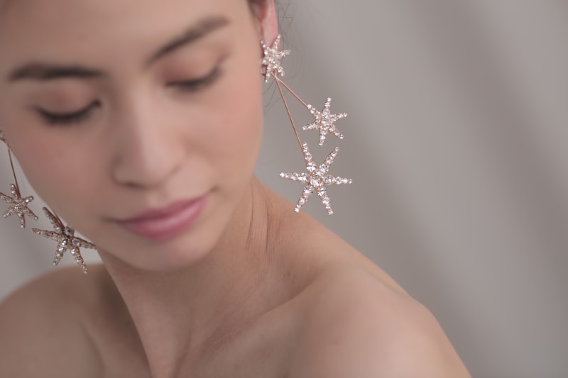 こちらはスワロフスキークリスタルで作られた3つのお星様のような雪の結晶のようなモチーフが煌めくイヤリングで、長さと大きさも違うことで歩くたびに揺れてぶつかり合う様子もとても可愛いです。