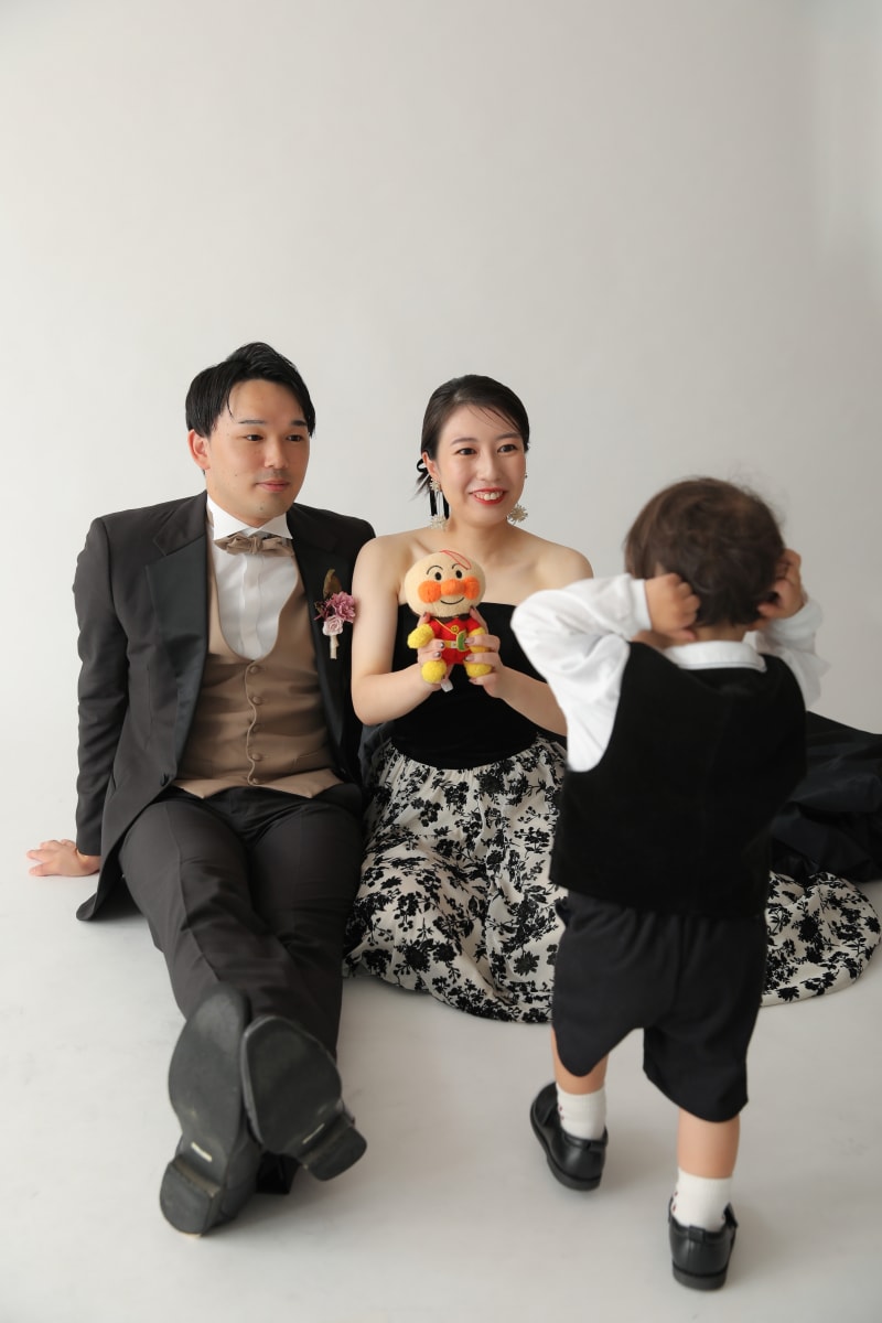 お子さんにも撮影に参加していただきました!お二人の衣装に合わせたコーディネート、とっても可愛かったです♡
