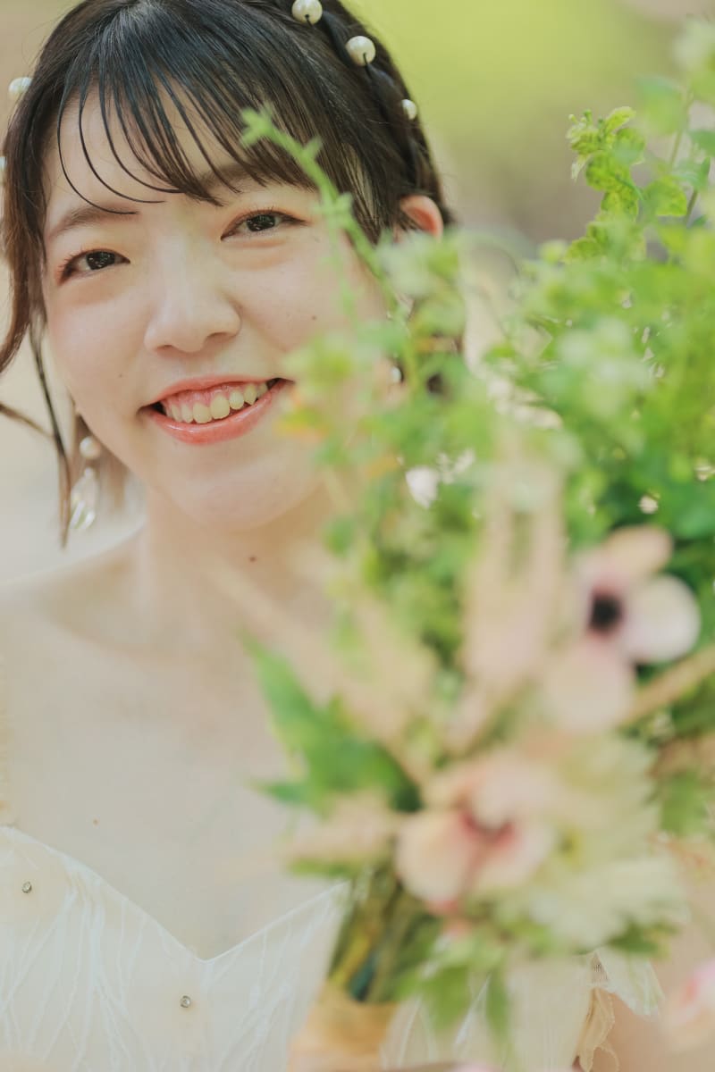メイクや髪型でさらにご新婦様の美しさを引き立たせたお写真も欠かせません。こちらのお写真ではブーケを手にふんわりとしたテイストで撮影させていただきました!