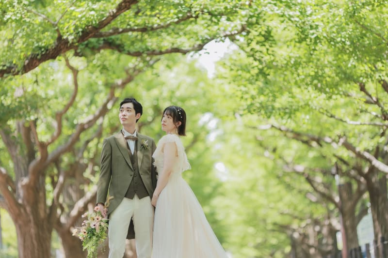 鮮やかな緑とお二人がお選びになった衣装もとても合っています!