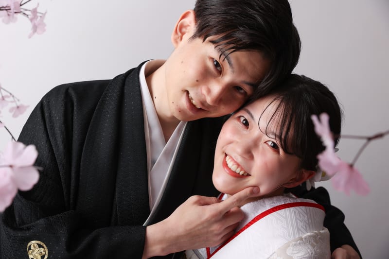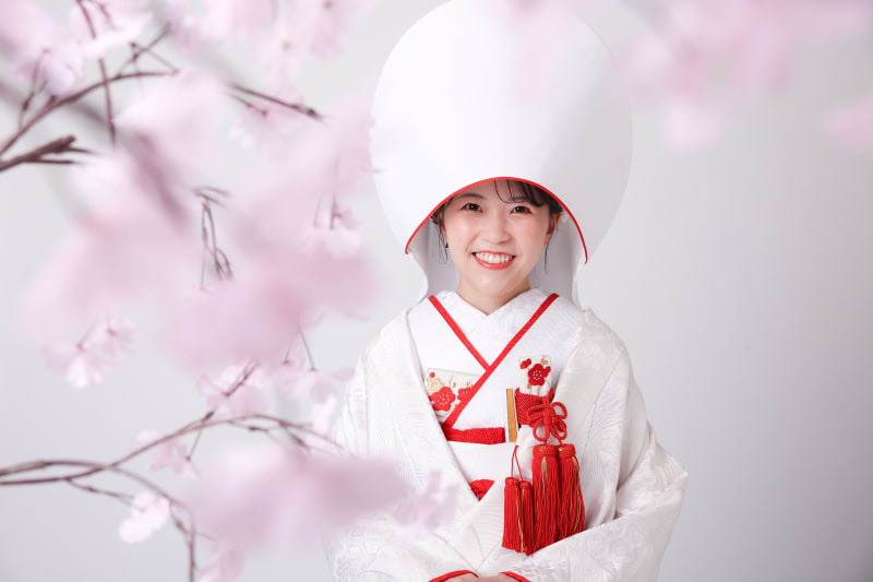 季節感も出せます!桜のピンクの色味と白無垢がぴったりですよね!