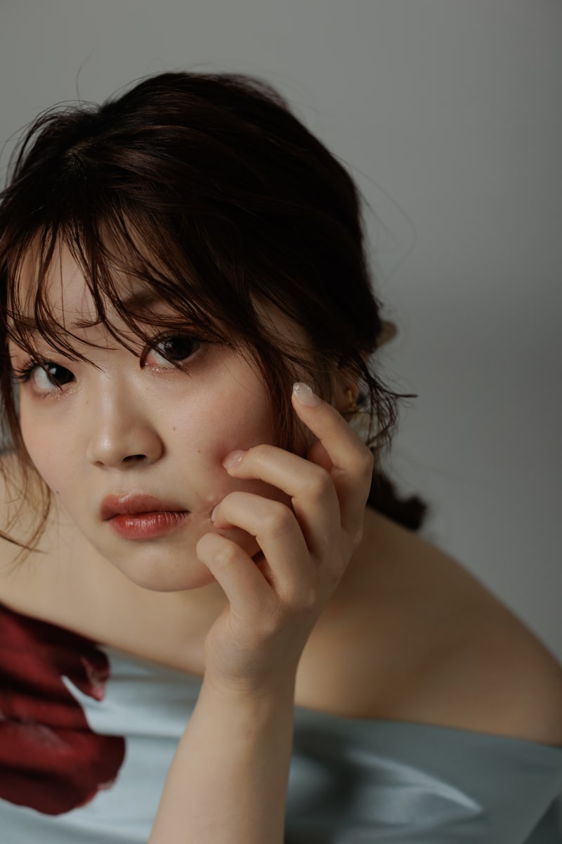 ワインレッドの花が大きく大胆に描かれており、一際目を引く大人なお写真をお楽しみいただけます。