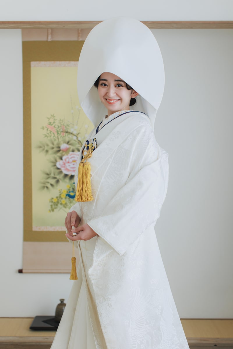 白無垢を着る方のみがつけれる綿帽子ですので、白無垢の際は是非お試しください。