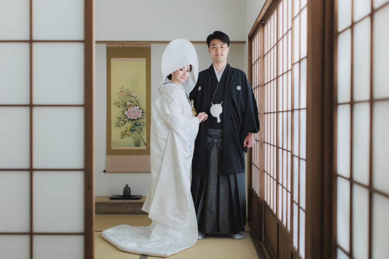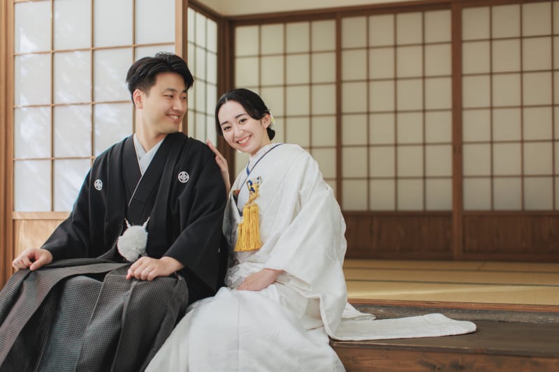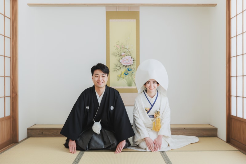 畳の上でフォーマルな写真(立ち姿・正座)が好まれます。