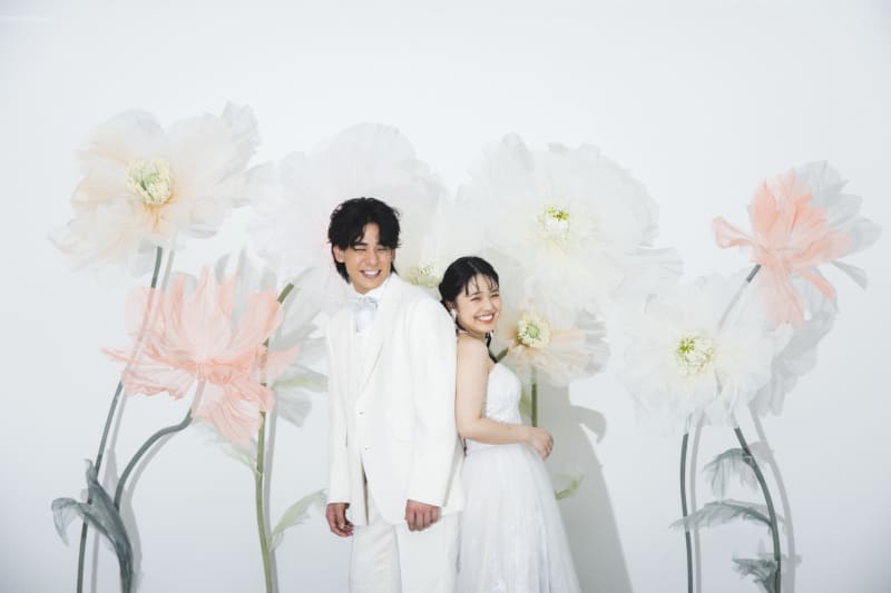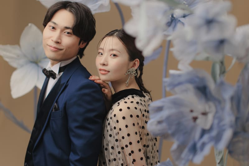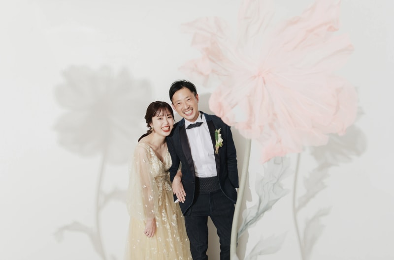 カラー背景とカラードレスと合わせてポップに合わせるもよし!