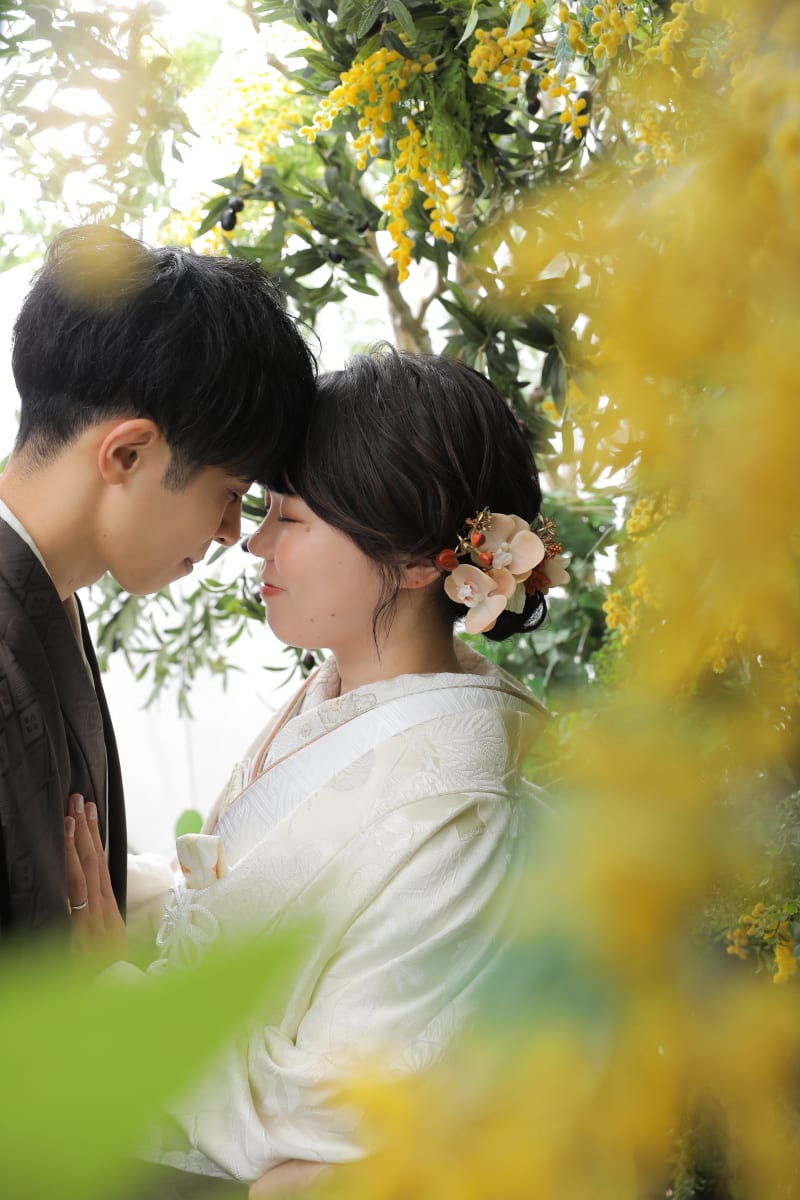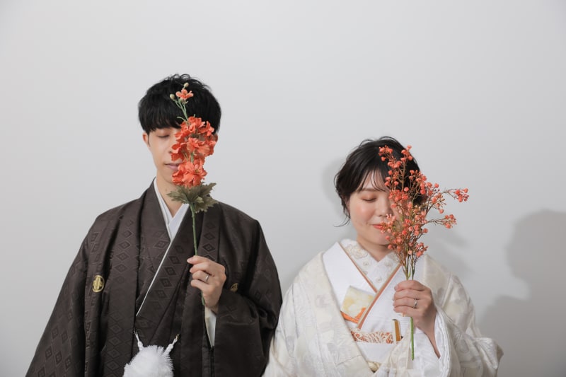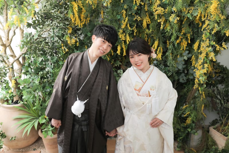 なので、おめでたい婚礼でお召しいただける衣装として白無垢・色打掛を選ばれるお二人はいらっしゃいます^^