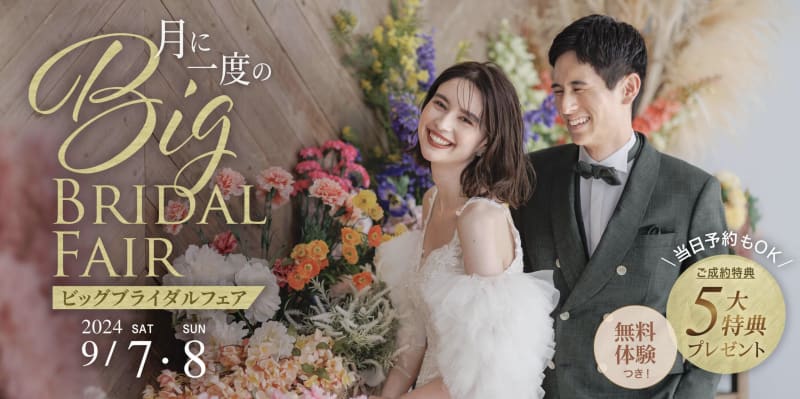 9月7・8日に月に一度のビックブライダルフェアを開催します!!