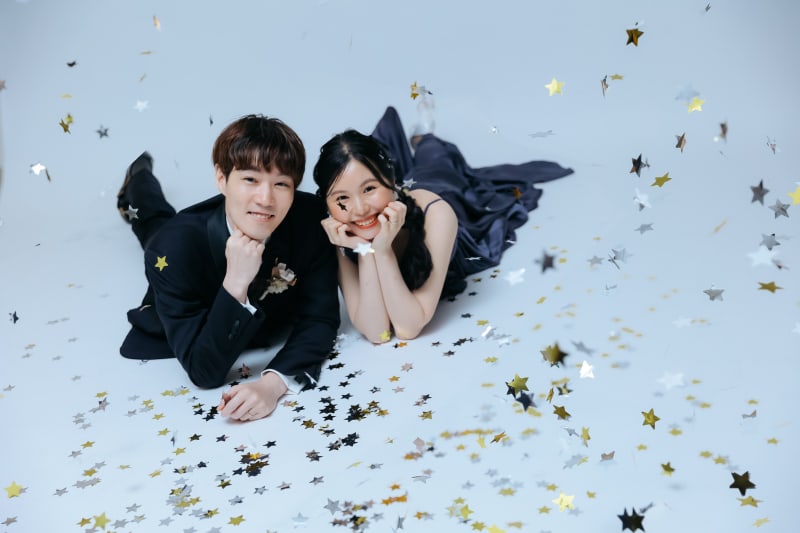 シンプルな背景をお二人で彩るのもおしゃれですよね