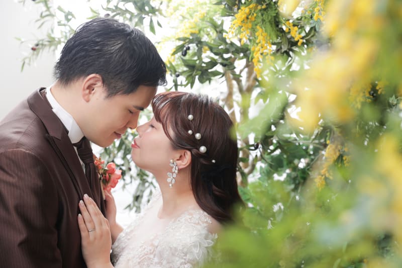 ミモザの壁から少しずれるとまた違った雰囲気のお写真にも!