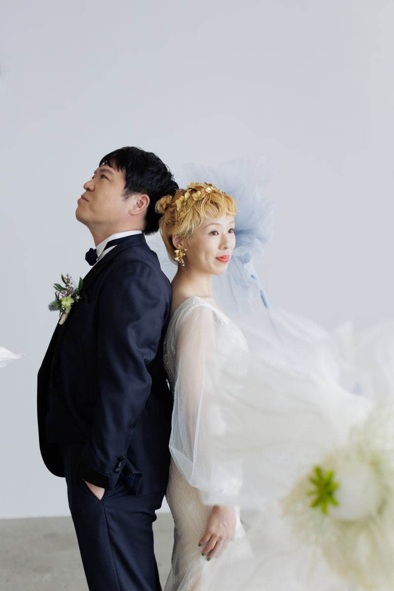 白背景になっているので素敵なドレス、タキシードもしっかり映えていて負けていませんね!