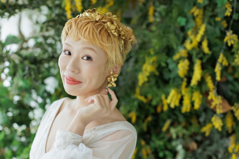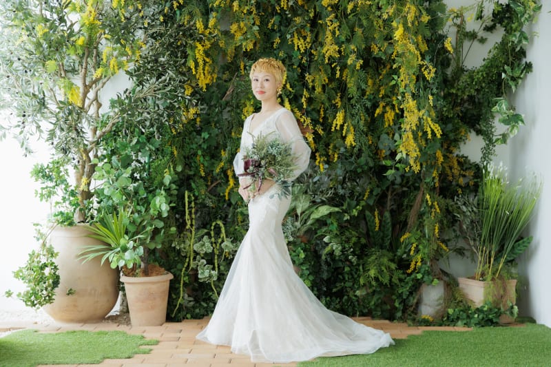 ミモザのお花背景と違って華やかな印象が増して可愛らしい印象になります!