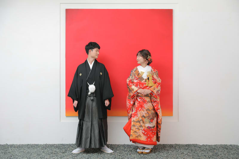 室内でこのようなかっちりとしたお写真も!着物の写りが綺麗に見えるように着物も整えさせていただきます。紹介させていただきました通り、様々な背景で撮影することができるので、お二人の好きな背景を見つけてください^^今回紹介したもの以外にもいくつかありますのでスタッフにお気軽にお問い合わせください!!
