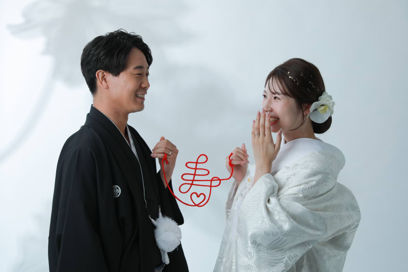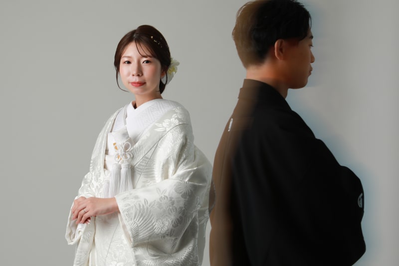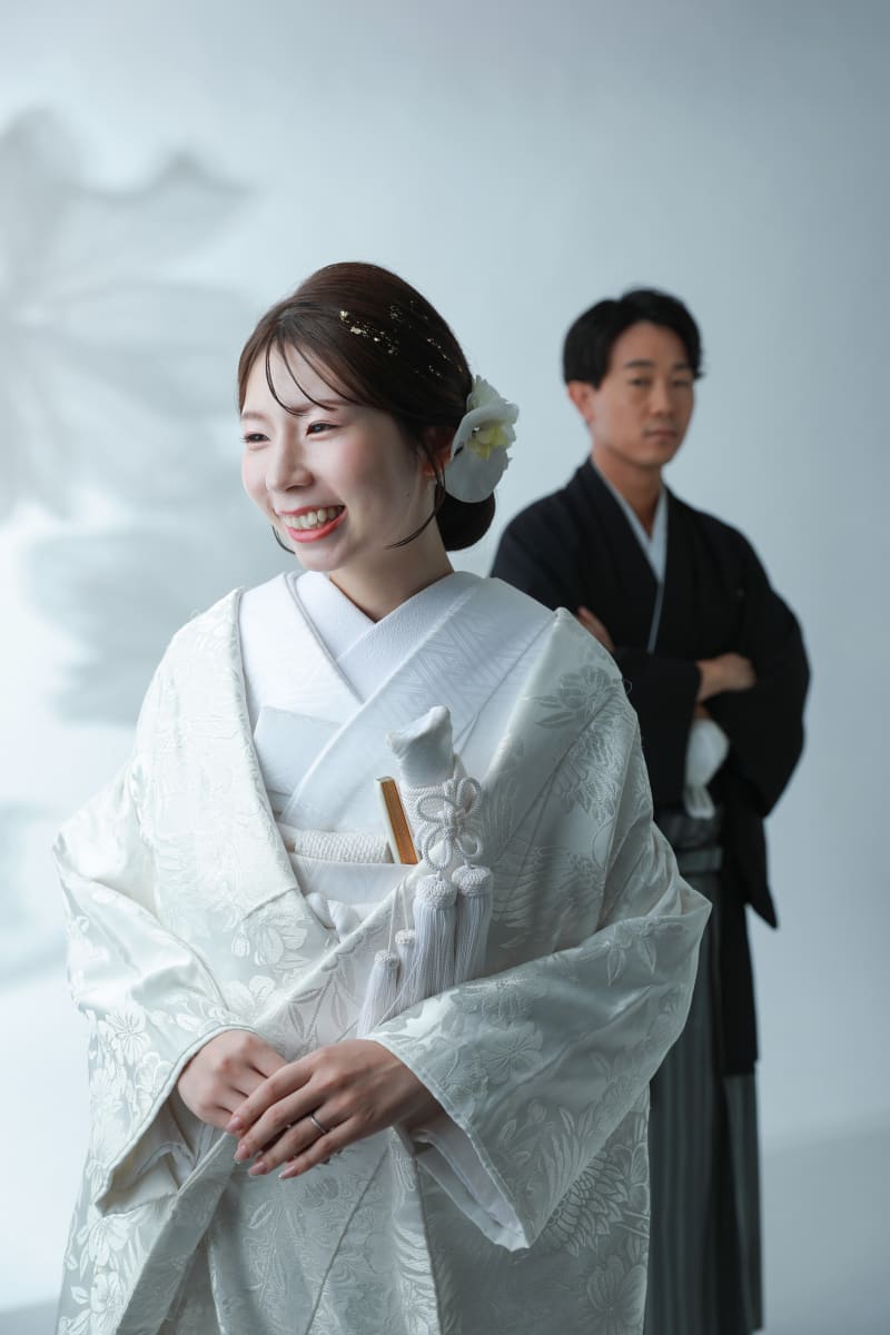 白の背景でも様々なお二人の姿を残すことができるのでご安心ください!