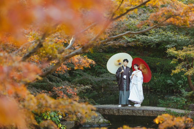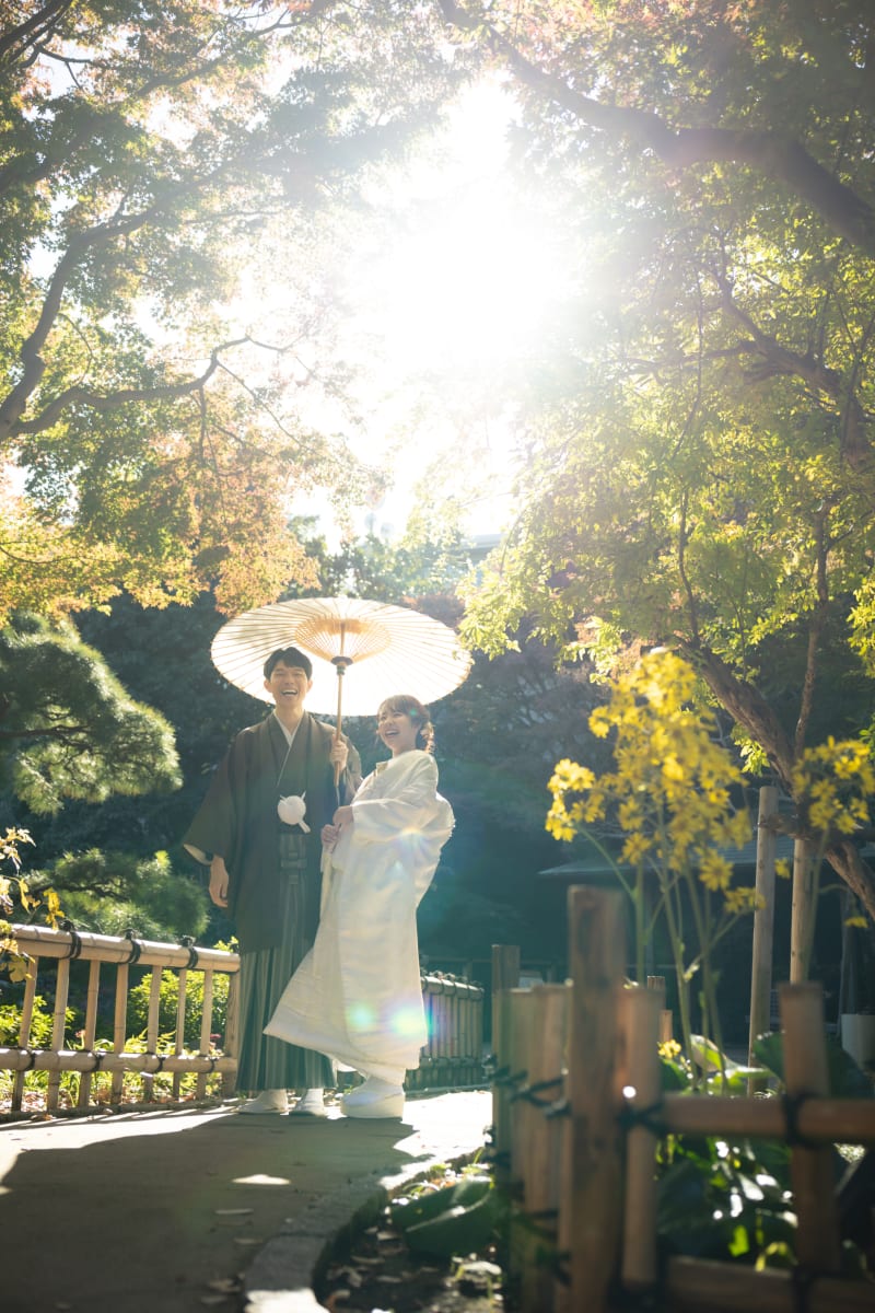 太陽の光と紅葉が綺麗で、お二人もにっこにこでした!